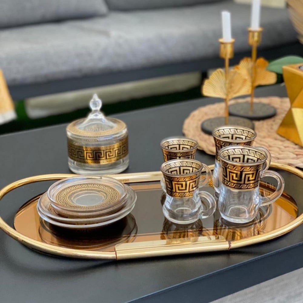 طقم قهوة عربية لونين - مع ٢ فنجال معدني
