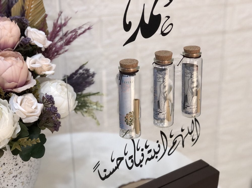 يتم اختيار الاسماء و العبارة وعدد زجاجات القيمة