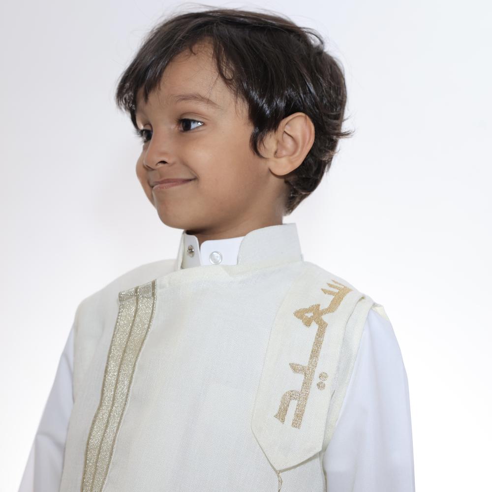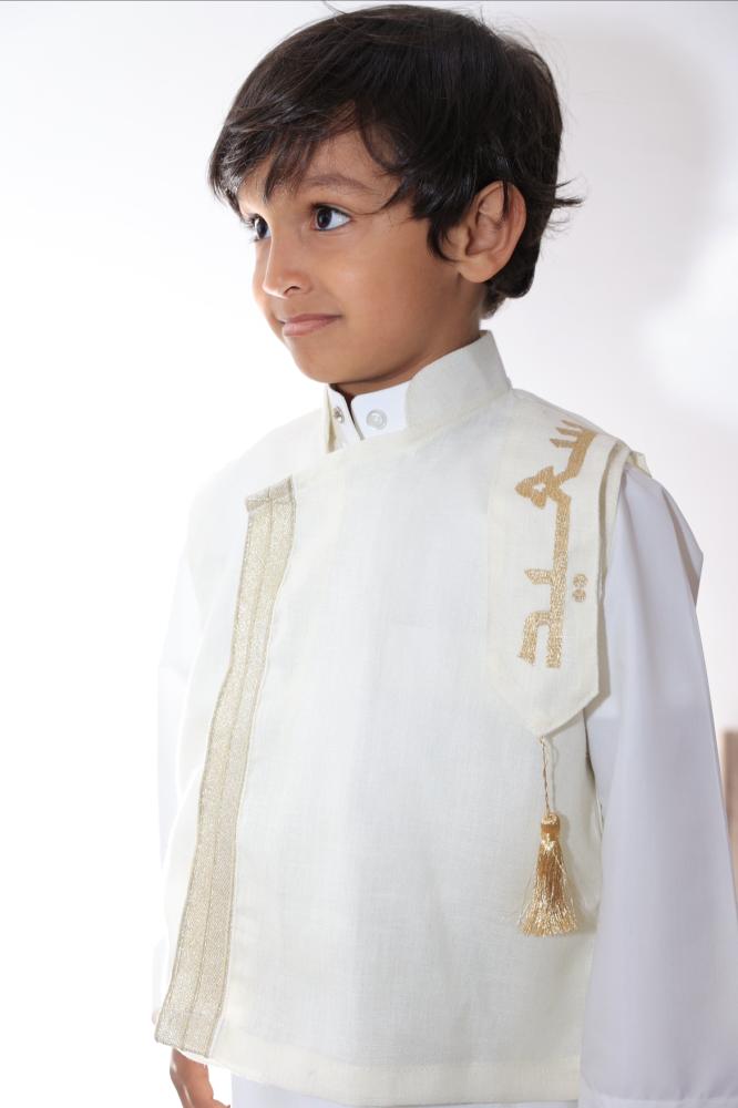 يأتي بتصميم عصري جذاب، مع تطريز مميز يحمل اسم الطفل، ليضفي لمسة شخصية خاصة، مما يجعله خياراً رائعاً لإطلالة مميزة في الأعياد والمناسبات.