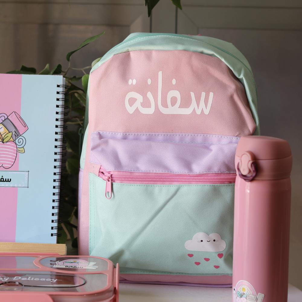 حقيبة روضة بتصميم وردي جميل للروضة بالاسم