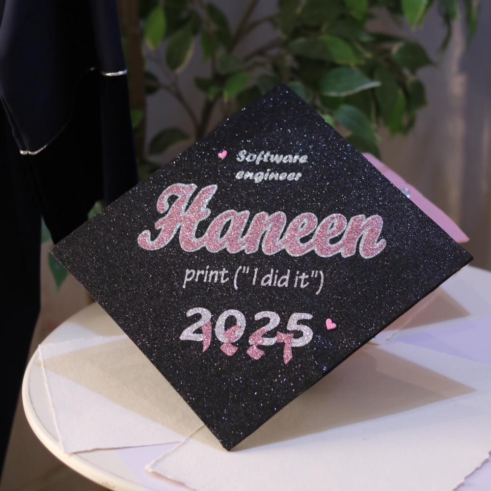 قبعة تخرج بتصميم جلتر ترند لعام 2025مخصصة بالاسم والتاريخ وعبارات حسب طلب العميلةبعدة الوان من الخيارات