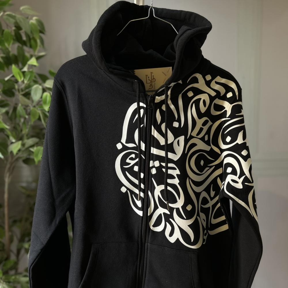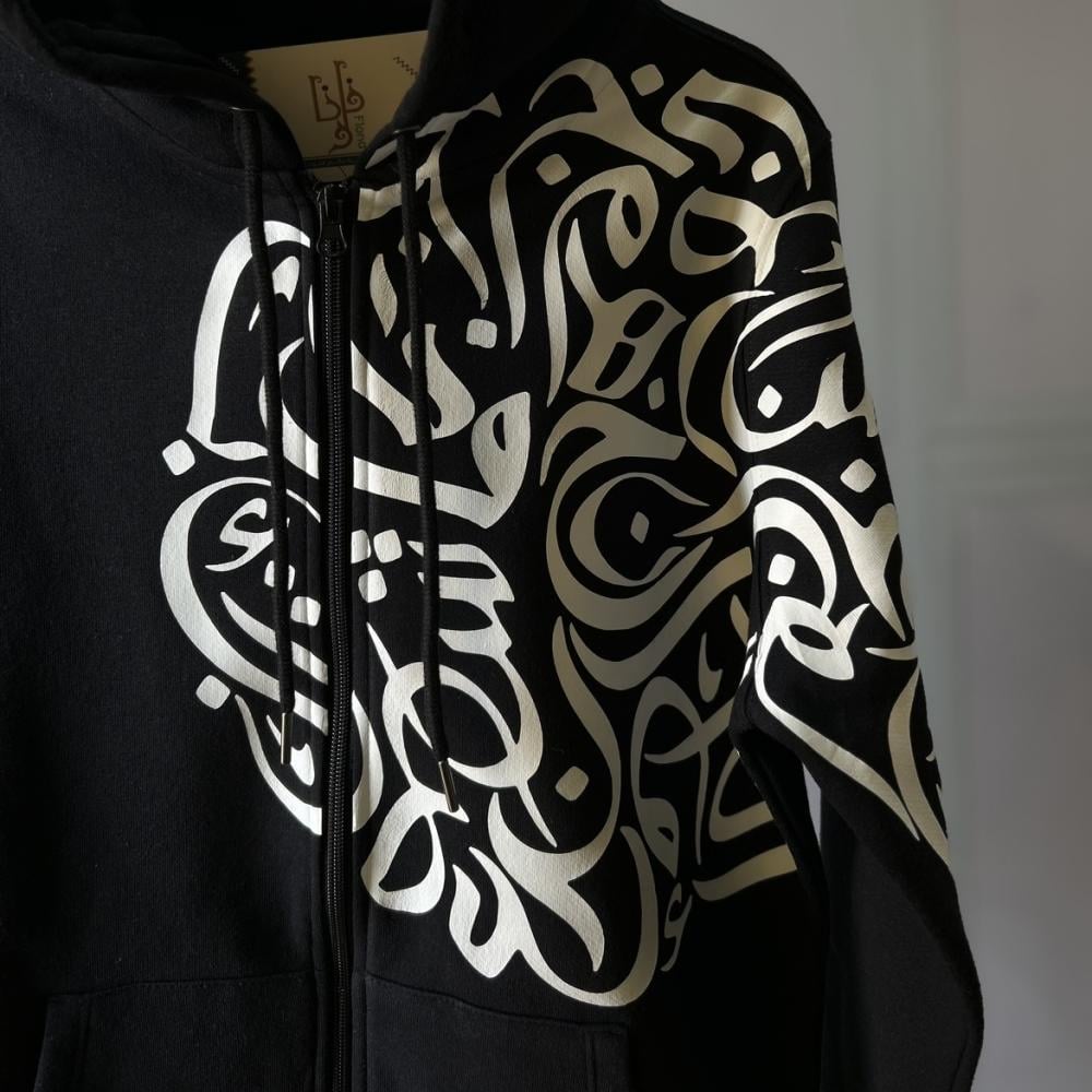 قطعة ملابس فريدة تجمع بين الأناقة والراحة. يتميز هذا الهودي بتصميمه العصري الذي يعكس جمال الخط العربي، حيث تتداخل الحروف بطريقة فنية مبهرة، مما يضفي لمسة عصرية ومبتكرة.
