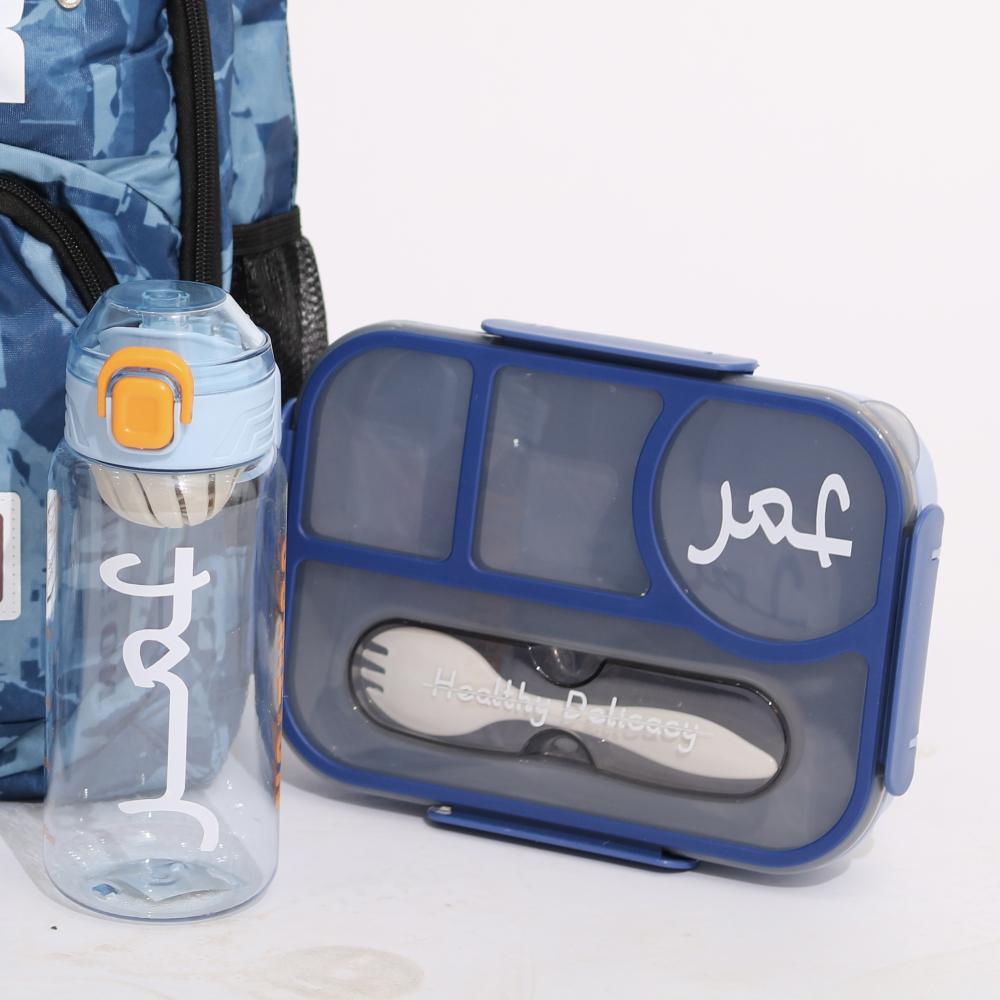 لانش بوكس ازرق صندوق غداء مقسم بالاسم