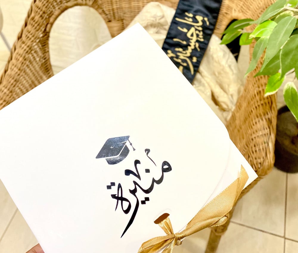 وشاح تخرج اسود مطرز مع صندوق التغليف
