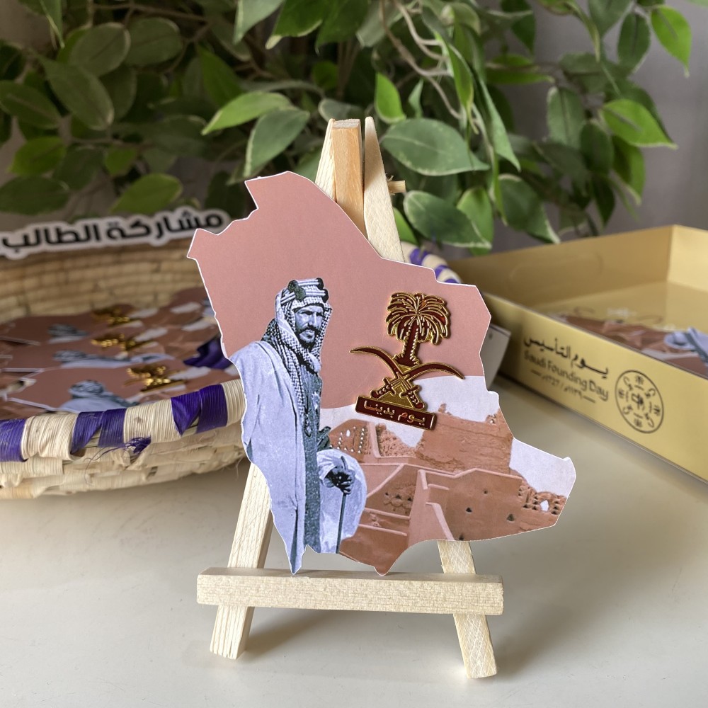 صينية خوص تحتوي ١٨ خريطة تحمل بروش معدني سيفين ونخلة